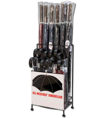 Custom Metal Display Fixtures Metal Umbrella and Belt Display Stand with poster